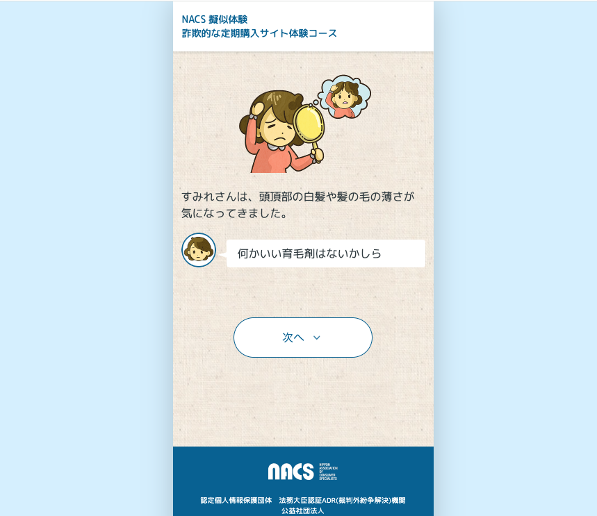 疑似体験NACS 詐欺的な定期購入サイトを見破る体験コース